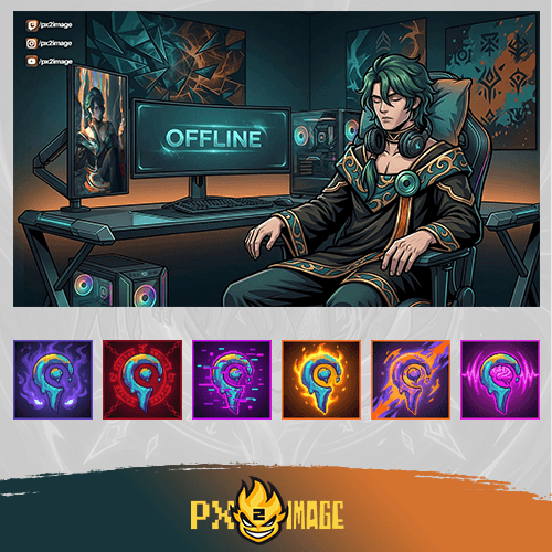 League of Legends Hwei yayıncı paketi, Twitch ve Kick platformlarında yayın yapan Hwei oyuncuları için özel olarak hazırlanmış animasyonlu yayın tasarım paketidir. Bu paket sayesinde Hwei’nin duygu temelli sanatını, farklı büyü formlarıyla alanı kontrol eden oyun stilini ve zihinsel baskı kuran estetiğini yayınlarına sanatsal ve karanlık bir görsel kimlikle yansıtabilirsin.
